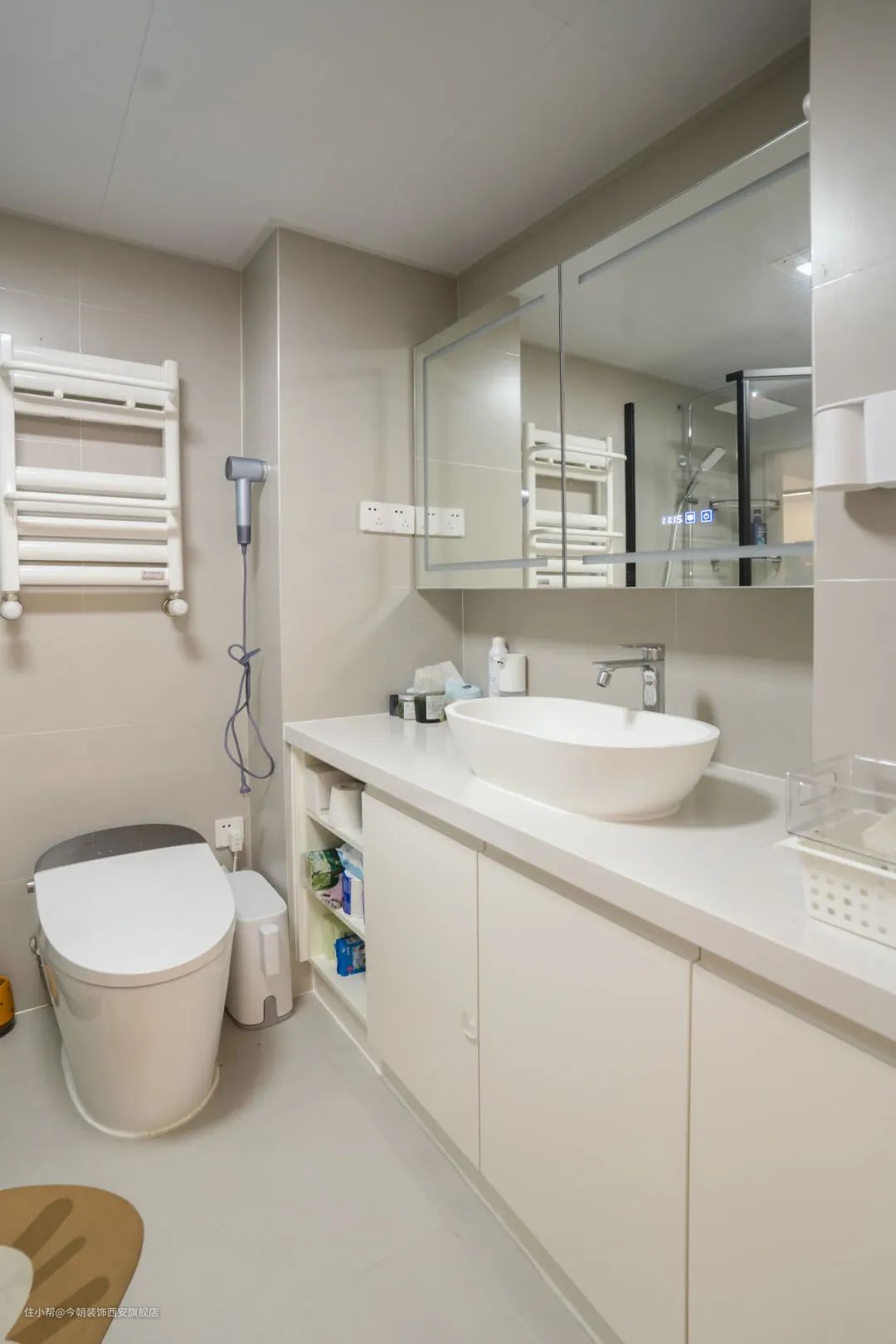 卫生间收纳最大的痛点就在于“面积小,杂物多”,所以卫生间收纳设计的两个核心要点就是“人和物”。