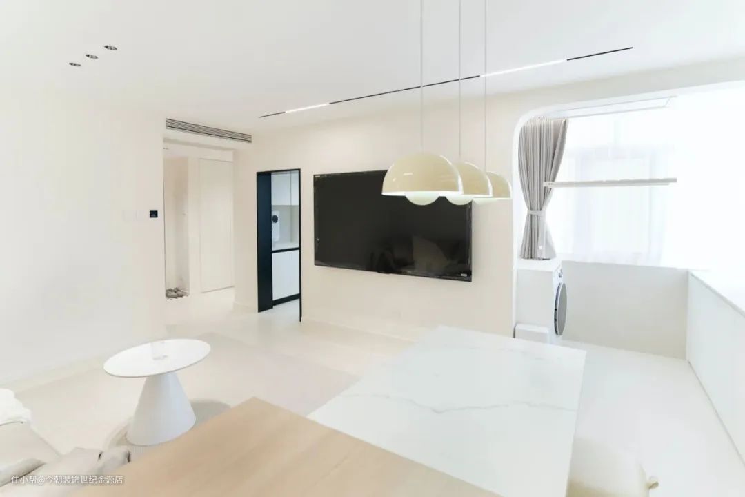 客餐厅改造前,餐桌、沙发还有笨重的电视柜拥挤在一起,毫无美感,空间狭小,不够通透。