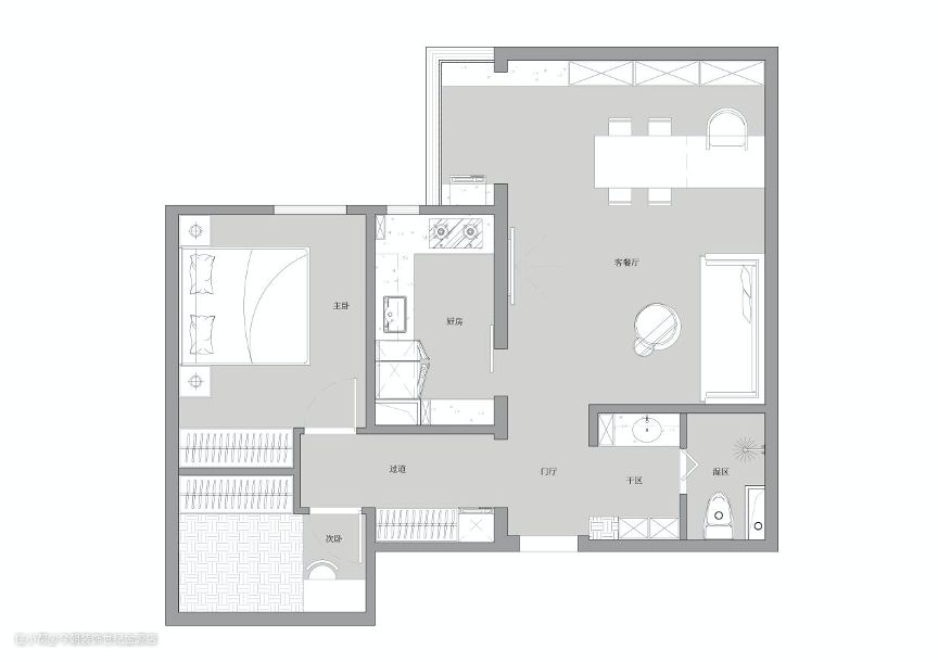 为避免相互影响,设计师从实用角度与美观角度出发,在客餐厅一体化设计的基础上完成了功能分区。