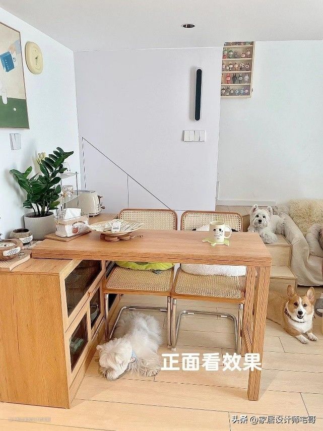 小姐姐为了防止小狗们随便乱跑到卧室影响自己休息,特意在楼梯口加装了一个栅栏门,非常实用。