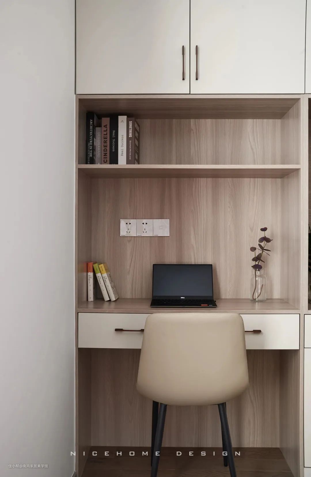 卧室床尾定制一体式书桌衣柜,提升睡眠空间功能性的同时,细化收纳品类还能为有限的空间扩容。