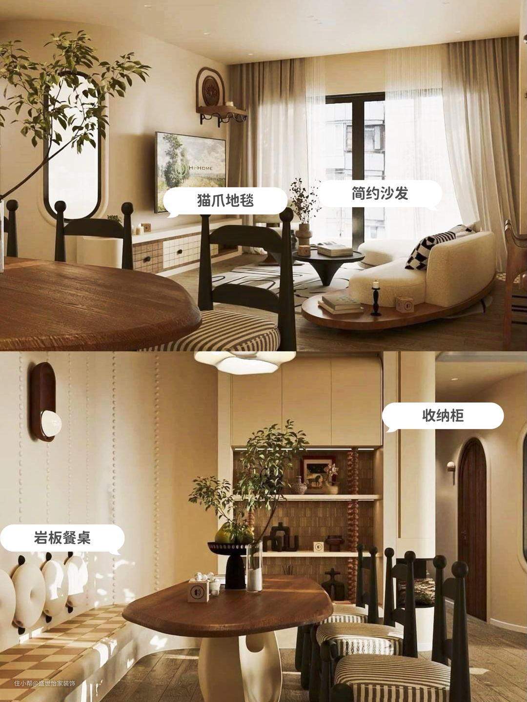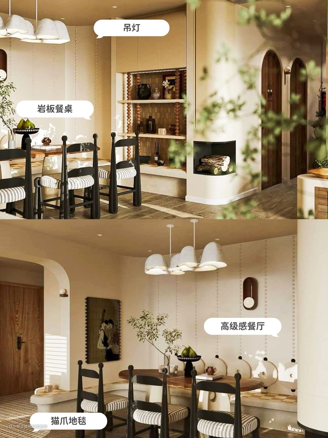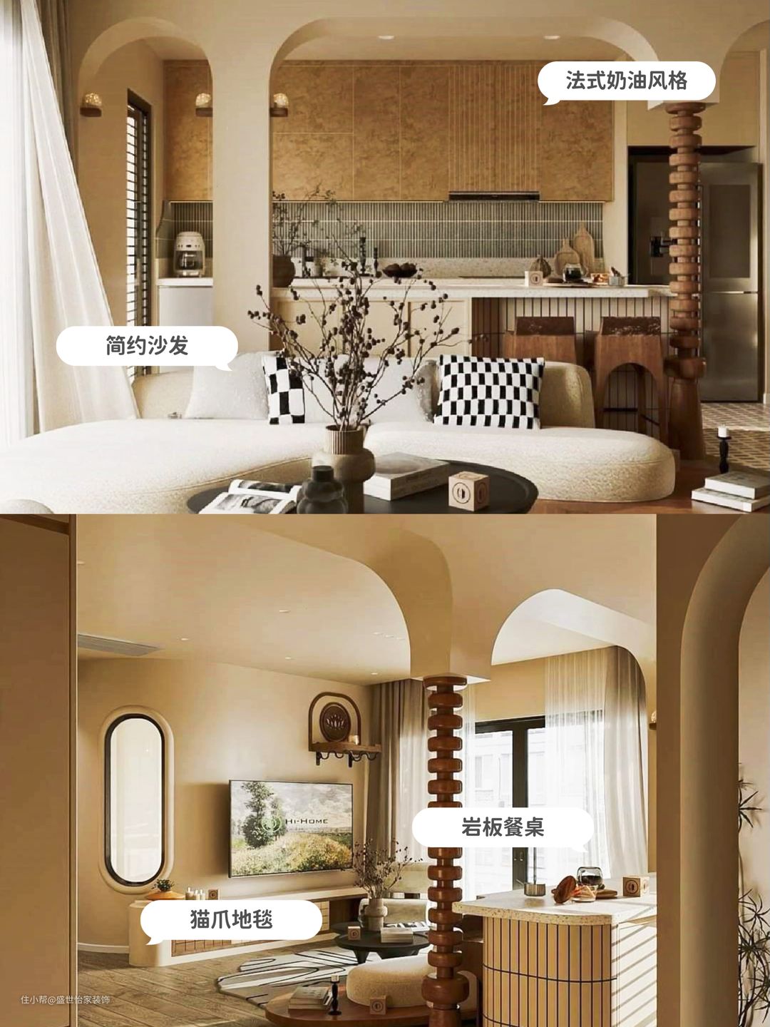 图片中的简约沙发和岩板餐桌是打造法式奶油风格家居的必备单品。它们不仅具有高颜值,而且实用性强。同时,复古地砖和装饰画也是营造复古氛围的绝佳选择。在装修过程中,不妨多关注这些好物,为你的家增添一份特色。