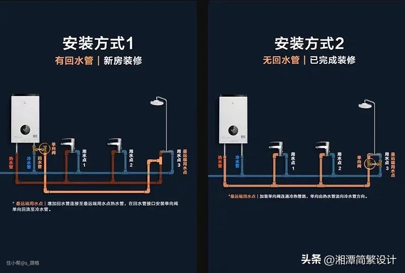 另外,一些家庭选择零冷水热水器,安装方法通常有两种↓↓↓