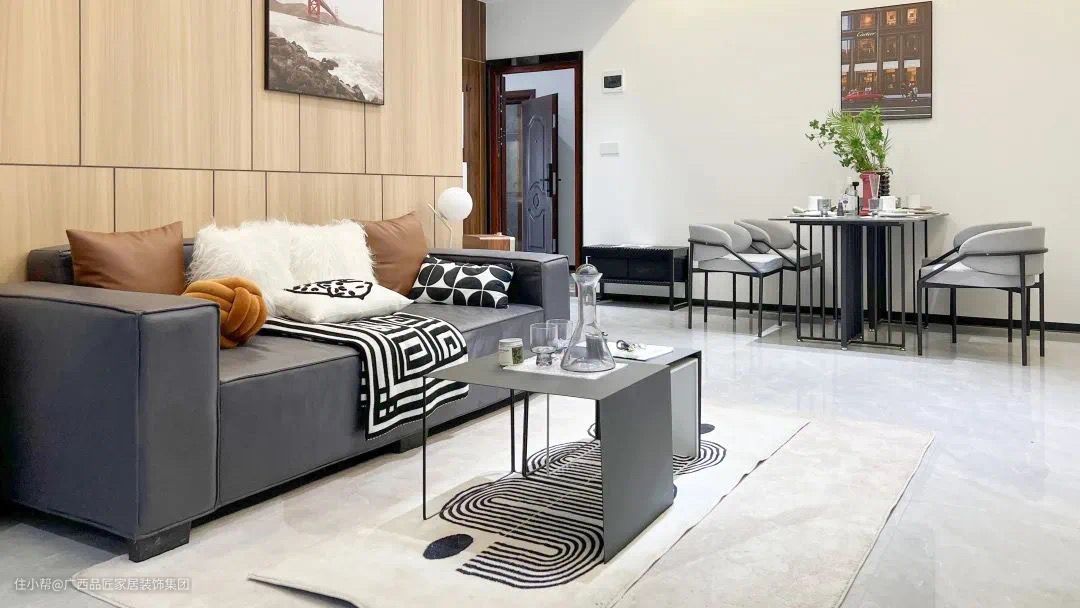 作为一个小户型,收纳成了一大难题,如何在最小的空间里创造出更大的价值,让每一处空间都能被充分利用到,且空间不会显得累赘、杂乱无章,设计师从柜子下手,定制了一门到顶的柜子,且在布局上做收敛,家具用实用简约的,从而让62㎡变成90㎡的效果。