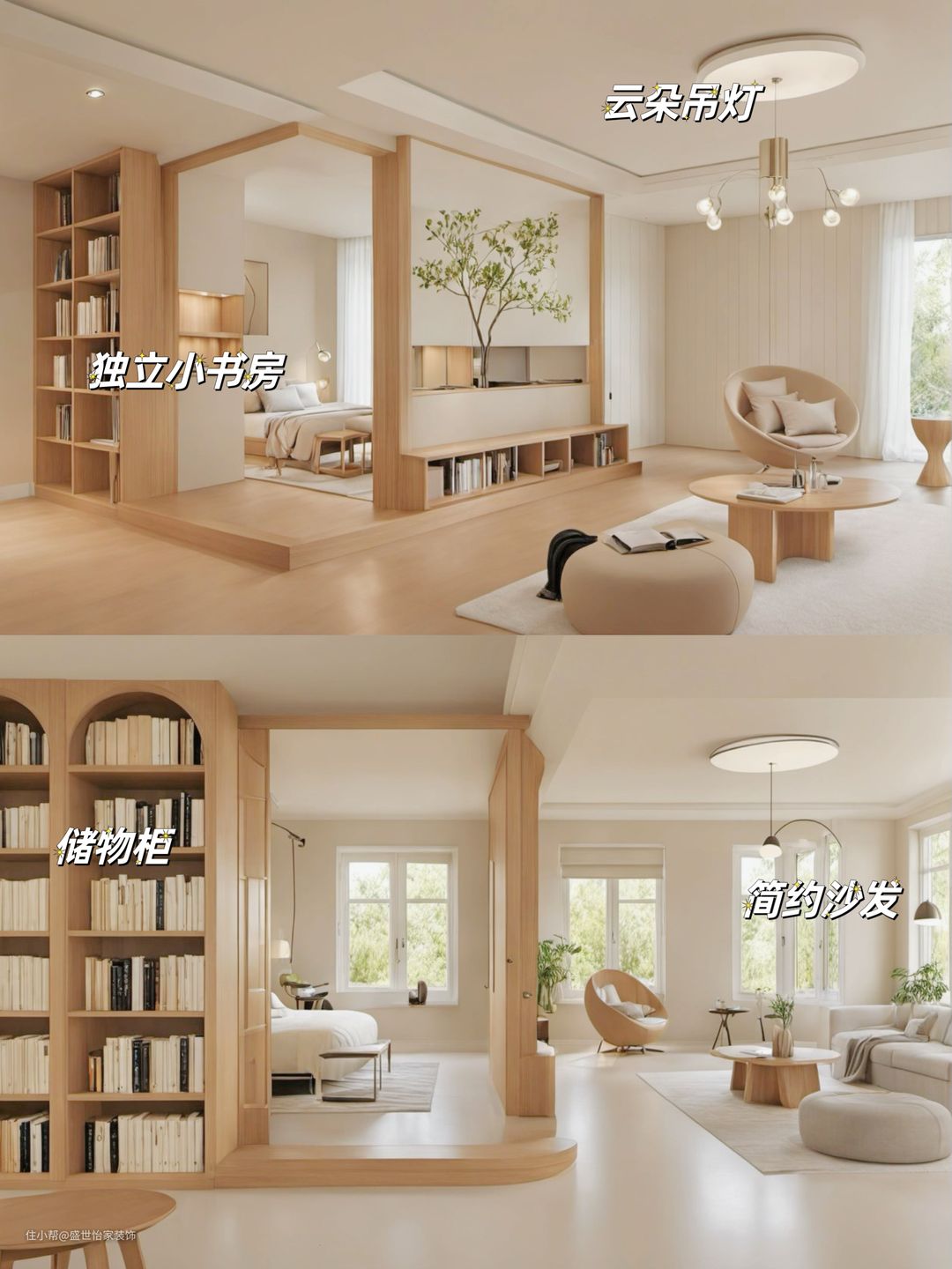 现代简约风格注重简洁、实用与舒适。设计巧妙运用木制隔板,既实现了空间划分,又增添了设计感。卧室与客厅的巧妙融合,展现了现代家居设计的灵活多变。同时,自然光的巧妙引入,让空间更加明亮通透😍。