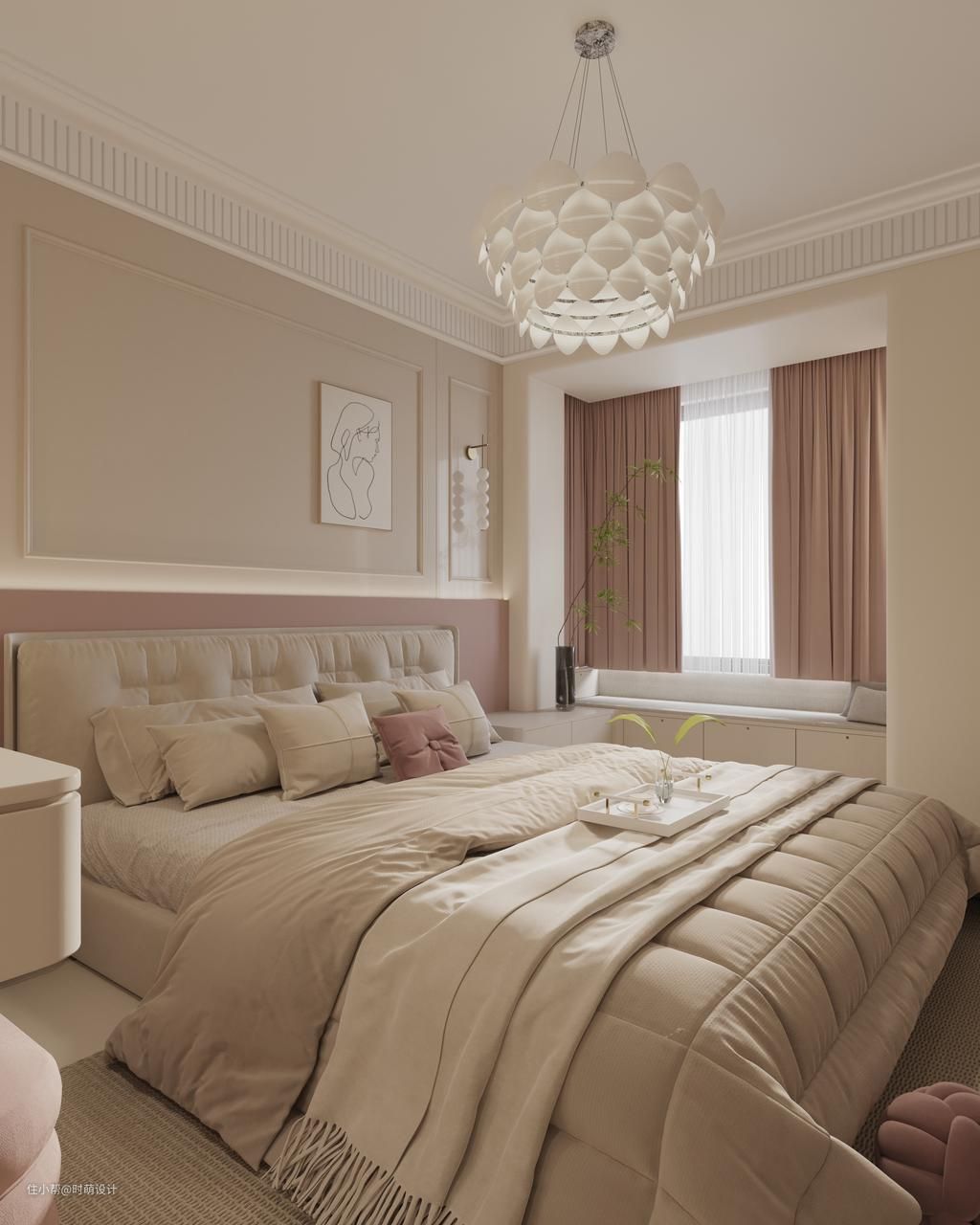 在家居设计中,要在有限空间内打造实用与美观并存的居住环境,对设计师而言无疑是一大挑战。以本案例这套 140 平方米的住宅为例,它拥有四室两厅一厨两卫,户型本身就具备较强的实用性和扩展性。四间卧室的设计,为家庭成员提供了充裕的私人空间。然而,每个空间的特点以及屋主的具体需求,也给设计带来了新的考验。因此,本设计通过精心规划和巧妙布局,致力于营造一个既满足功能需求,又不失美观的居住环境。特别是在客厅、餐厅和厨房的设计上,进行了适度的拆改,以确保空间的连贯性和开阔感,同时采用法式风格,增添空间的优雅与格调。
