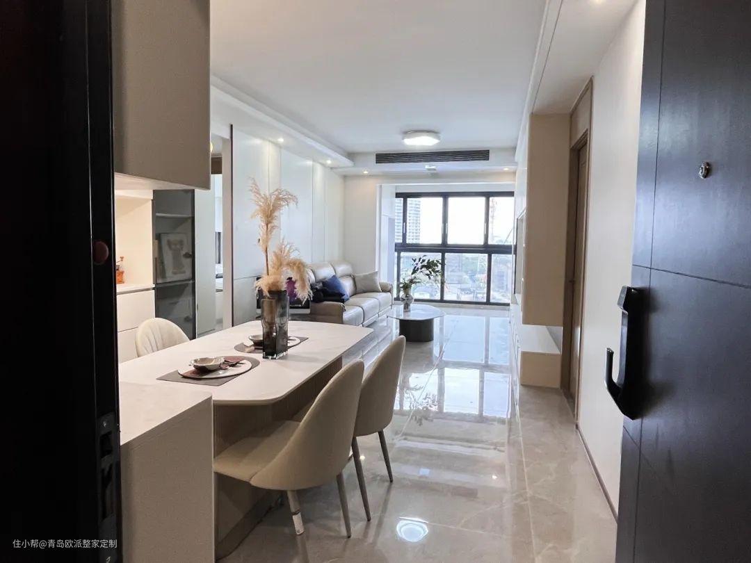 ✔玄关柜、餐边柜,贴墙做一体L型设计,更省空间,偷出餐厅面积,小户型也有餐厅啦!