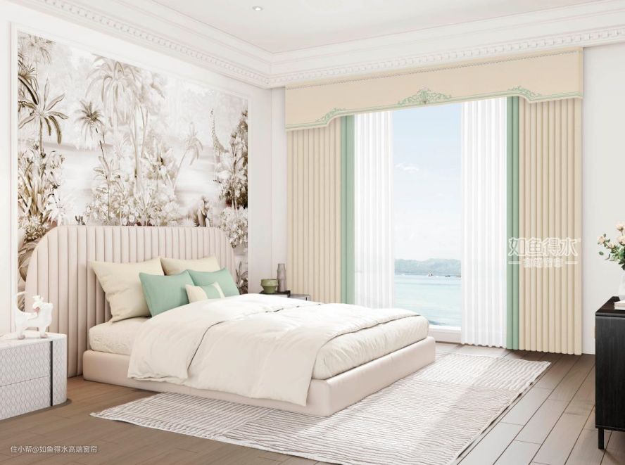 3、颜色与风格:遮光窗帘的颜色和风格应与卧室的整体装修风格相协调。深色调的窗帘遮光效果好,但可能给人压抑的感觉;