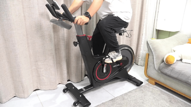 另外,这款动感单车的稳定性也确实非常好,不管是坐着骑行还是站起来骑行都十分稳当,仅仅只有握把部分会有轻微的晃动,所以我也就不用担心它会突然翻倒了。