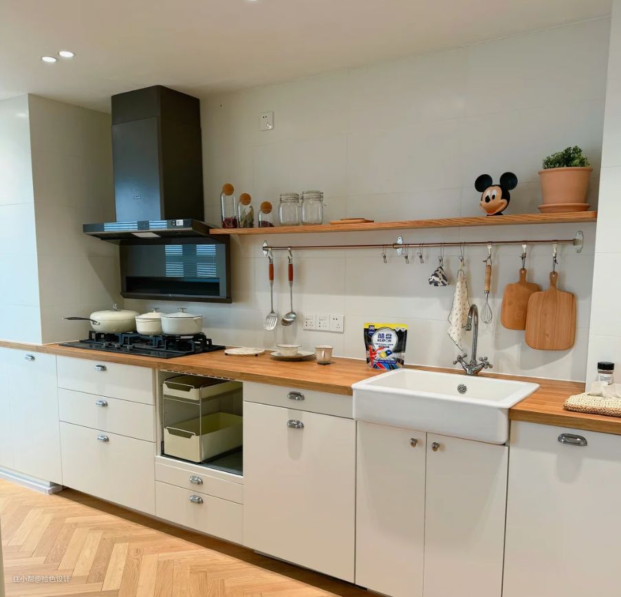其实扩充厨房收纳的方法有很多种,我们完全不需要盯着吊柜。当然,也不是说吊柜收纳不好,只是若没有做好合理设计,真的一点都不好用。所以大家在装修厨房时,一定要重视到一点。