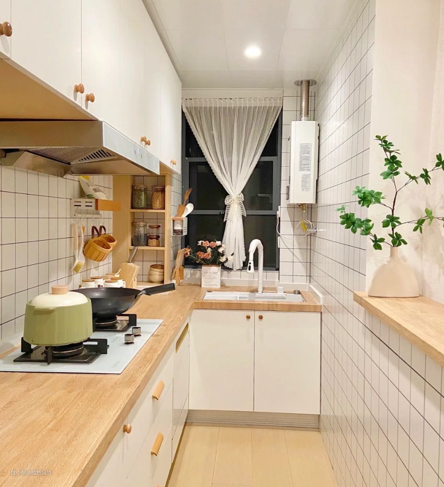 对于小厨房来说,这种设计也释放了空间感,使其不会显得太拥挤。当然,唯一要做的就是勤收拾。否则,时间一长肯定会乱。