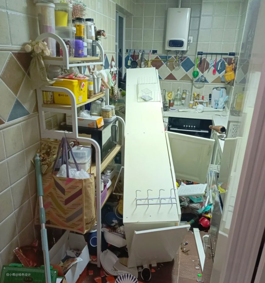 千万别不当回事,网友@金霓可,就遇到了厨房吊柜掉落的情况,好在掉落的时候厨房没人。否则,后果真的难以想象。