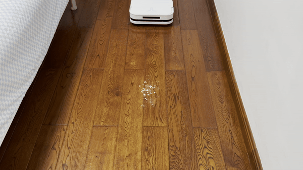 测试下科沃斯X5 PRO的吸尘效果,用燕麦片来模拟日常生活中常见的灰尘、颗粒物,只需一遍就能彻底吸干净,没有任何残留,吸尘效果可见一斑。