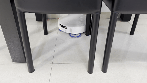 墙角和桌椅腿向来是扫拖机器人漏扫的重灾区,但科沃斯X5 PRO对这两个区域的清洁很有一套。遇到墙角时,扫拖机器人会走直角折线而非弧线,这样墙角边缘就能完全覆盖;清洁桌椅腿区域时,扫拖机器人会精准判断距离,折线绕行,外扩拖布盘可以自适应紧贴桌椅腿清洁。