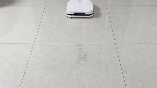 来见识下灵缠双梳齿防缠绕技术PRO的强大威力,人为让科沃斯X5 PRO一次性吸入大量长头发,看看头发会不会缠绕在滚刷上。