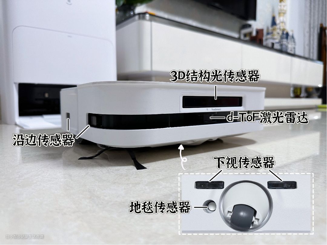 科沃斯X5 PRO底部配置有地毯传感器,一旦识别到地毯,拖布盘就会自动抬升,避免污染地毯,这点对铺了地毯的家庭特别友好。