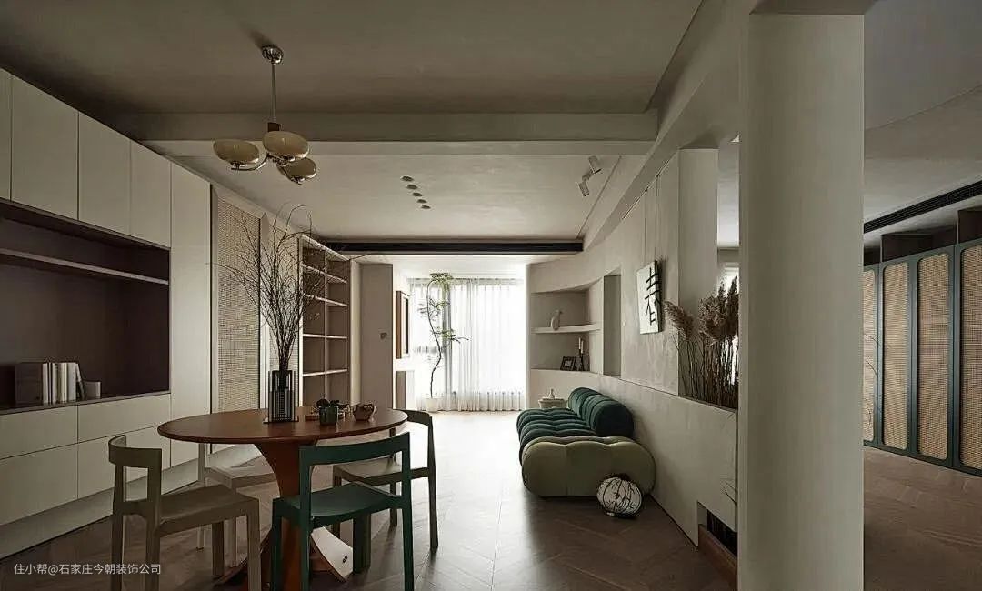 今天三岁分享的案例,是一套面积110㎡的中古风混搭三居室,屋主是一家三口,夫妻俩和一个儿子,平时不太会有人来住,丈夫注重材质,妻子讲究情怀,他们对“家”都有着很强的包容度,在110㎡的空间中,设计师很好的提炼了中古、侘寂、中式等多重风格,融合功能需求,又置入芦苇、透景、挂画…相映成趣,又各自相生,给人带来一种平静和轻松的感觉。