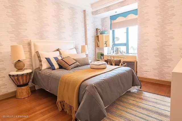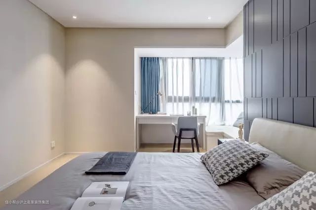另一种巧妙的设计是舍弃床头柜,转而放置一张小书桌。这样做的好处在于,书桌不直接面向阳光,因此对窗帘的遮光性能要求相对较低,为您营造一个更为舒适的阅读和工作环境。