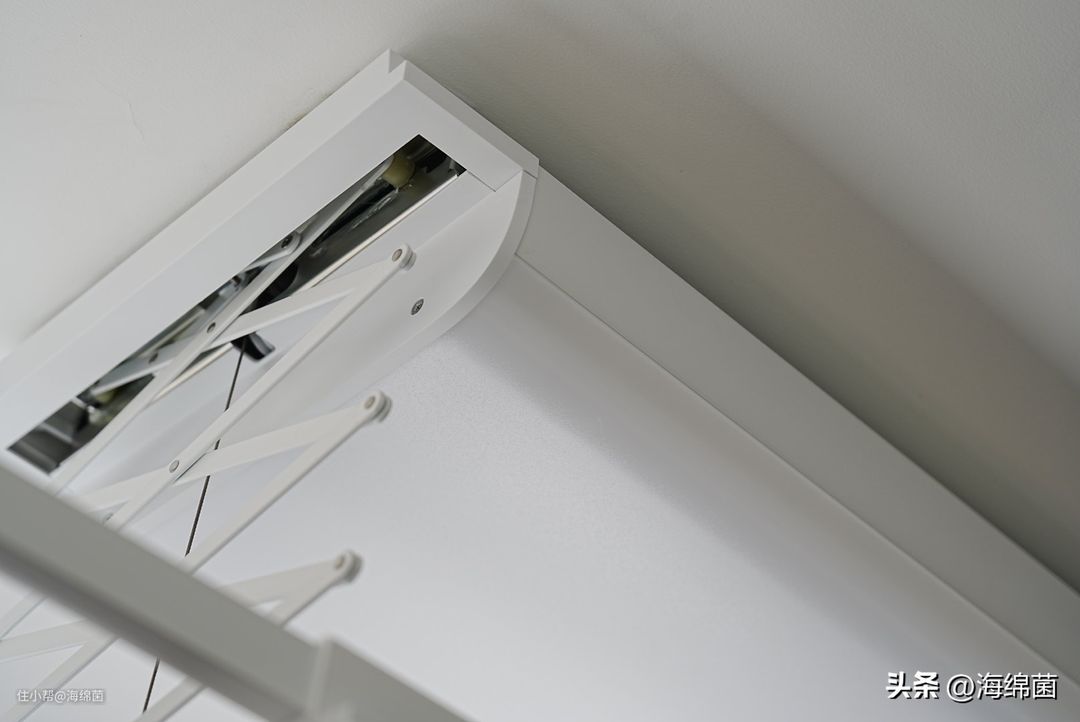 近距离看一下,一体化的晾被杆做工精细,牢固度也是在线的。