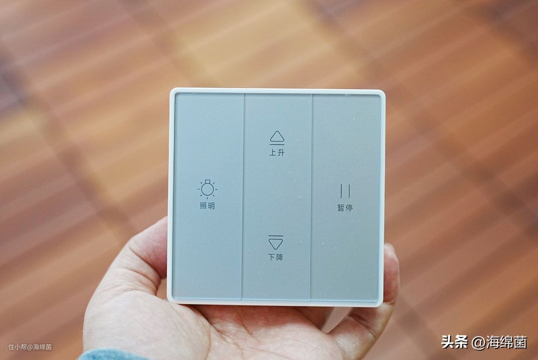无线遥控器就是标准86型开关的大小,三分键位清楚标识了功能,按压即可操控。