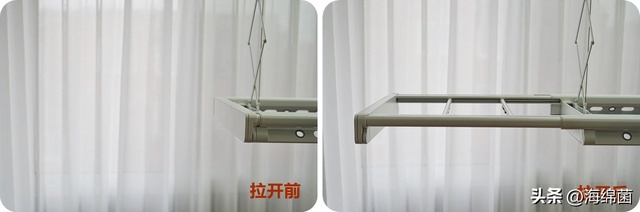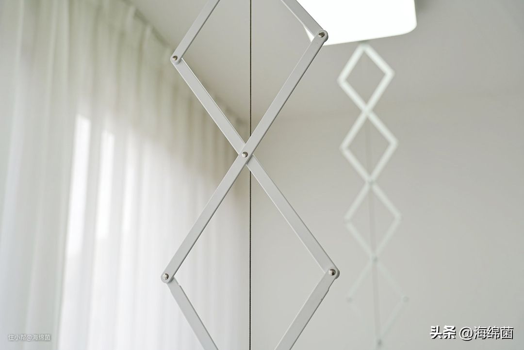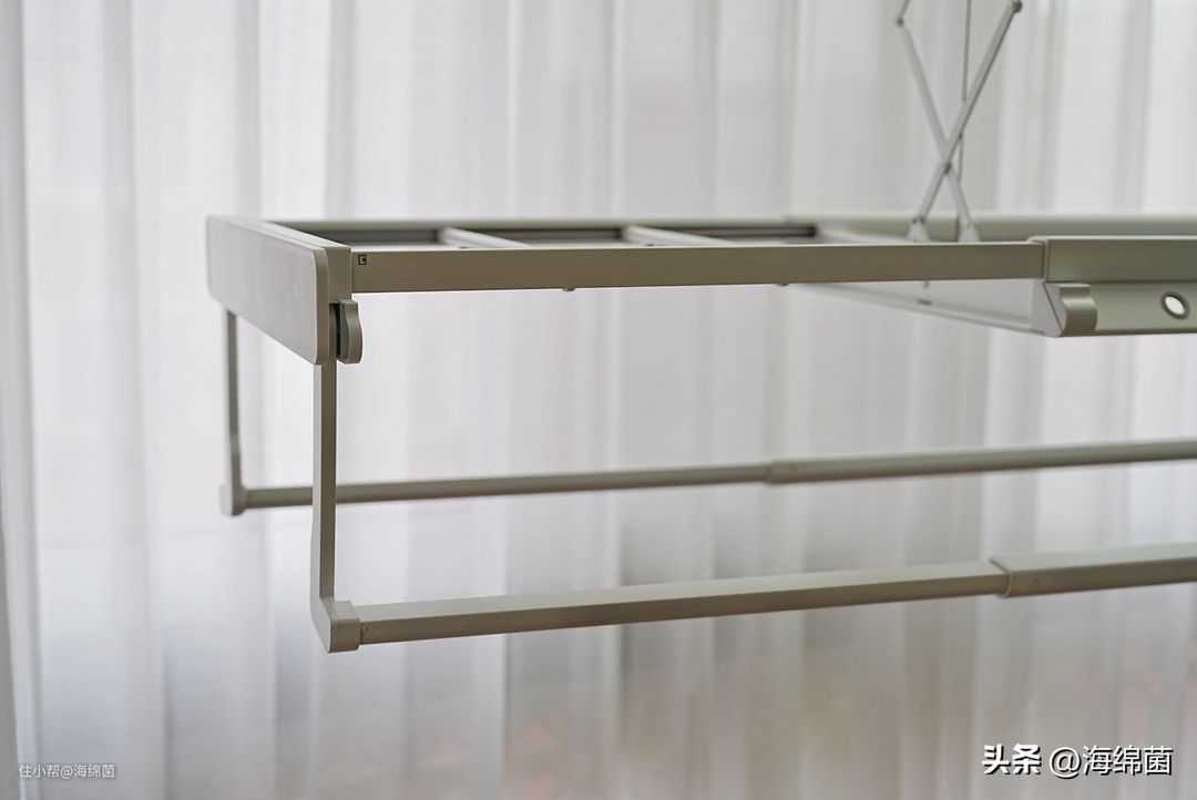 晾衣架两侧还可以拉出水平延伸,拉的时候注意握住侧面的中心位置,这样两边受力均衡,拉起和收回时就会比较丝滑。