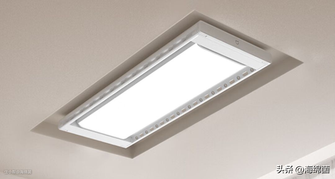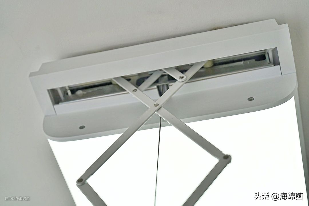 如果前期做好吊顶的话,超薄机身也支持嵌入式安装,如果需要嵌入式安装的话需要开槽,开槽深度建议120mm,晾衣杆收回后就能完全隐藏,平时看起来就是一台普通的吸顶灯,非常适合极简的家居风格。