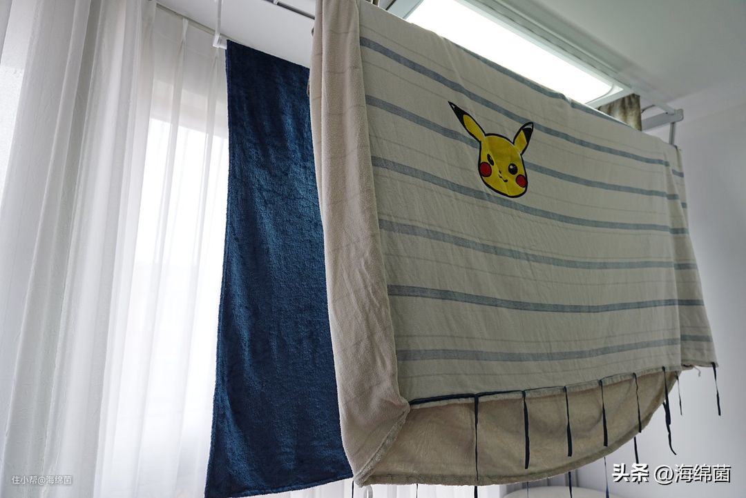 当然,一般来说两个晾杆是会同时使用的,一条挂被套,一条挂床单。