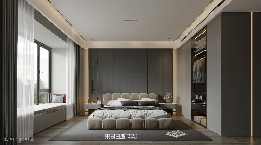 设计师巧妙地运用了氛围灯的内嵌设计,为房间增添了温馨的氛围。同时,选用有质感的原木纹理护墙板,打造出细节满满、品质卓越的睡眠空间。