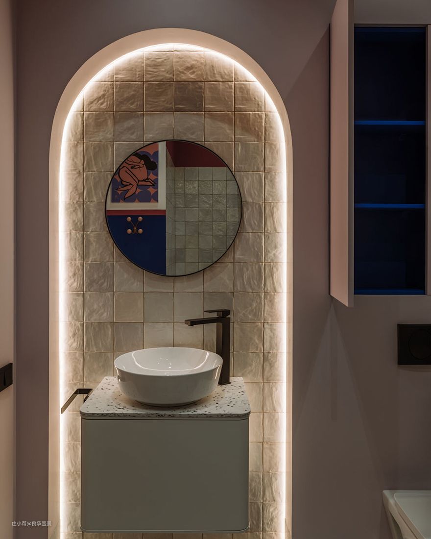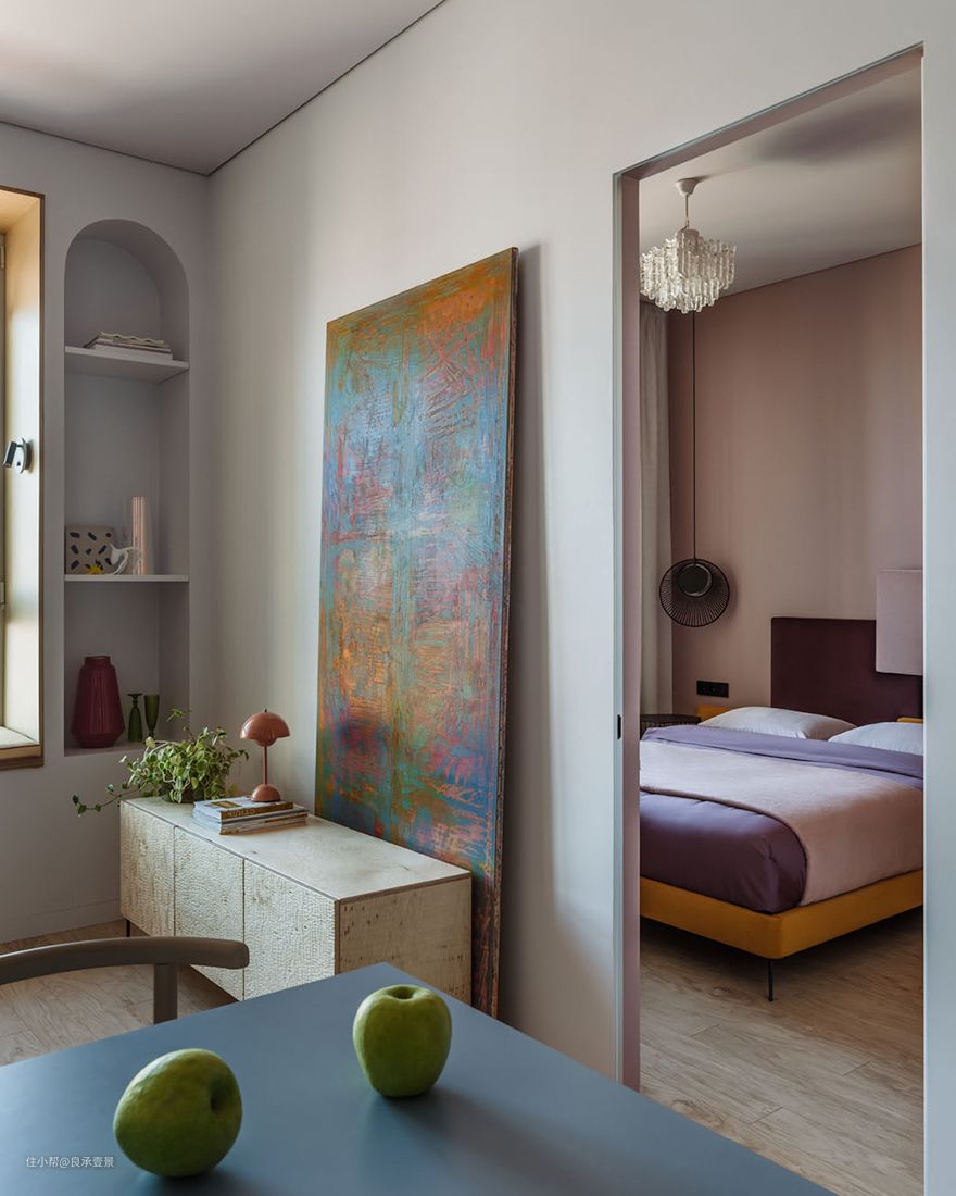 - 技术解决方案:采用“阴影接缝”技术安装石膏板制成的天花板设计,使用不错的型材和隐藏式安装底板,隐形门喷漆,以实现简洁的连接。同时,紧凑的柜子隐藏了所有技术连接和调节器。