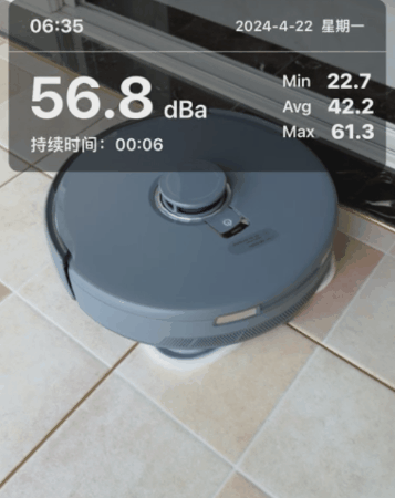 云鲸逍遥001自带硬件级全流程降噪设计,靠近主机实测,拖地模式下音噪低至53分贝。轻音低噪,处于人体可承受范围内,不会影响起居生活。