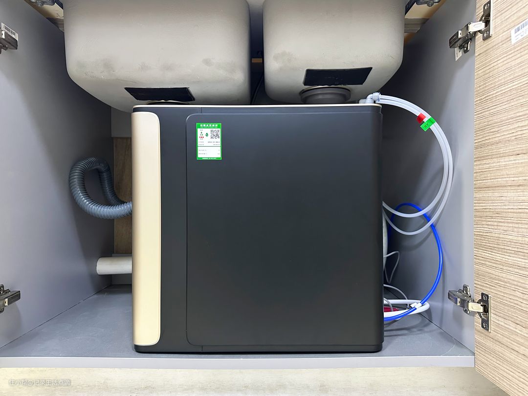 在收到净水器之前,厂家就已联系我对接上门安装事宜,收到次日厂家师傅就来上门安装了,安装服务细致专业,挺满意的。由于我家水槽下还有个小厨宝,所以净水器主机只能这样横着放了,不得不说纤薄的机身设计确实很有优势。