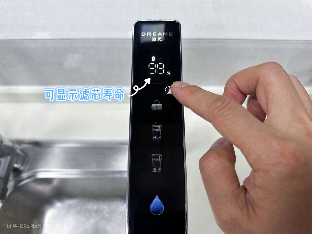 追觅U20配置了高清数显智能龙头,可现实水温、水质、滤芯状态等各种信息,触摸设计使用起来十分方便,即使湿手湿也能灵敏操作。