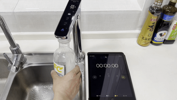 来测试下追觅U20的出水速度,选择温热水档,灌满一个容量为900ml的瓶子只需11.33秒。忽略误差不算,实测出水速度达到了4.77L/min,与官方宣传的4.8L/min基本一致。刚安装好开始使用时,如此快的出水速度真把我惊讶到了。