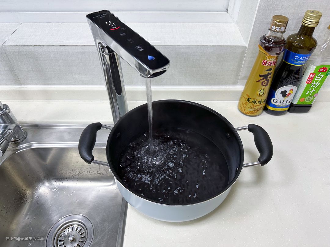温热水4.8L/min的出水速度十分给力,烹饪时往锅里加水也只需几十秒,仅比自来水的水流略小一些,如此快的出水速度不仅大大提高了烹饪效率,同时也让使用体验变得更好了。