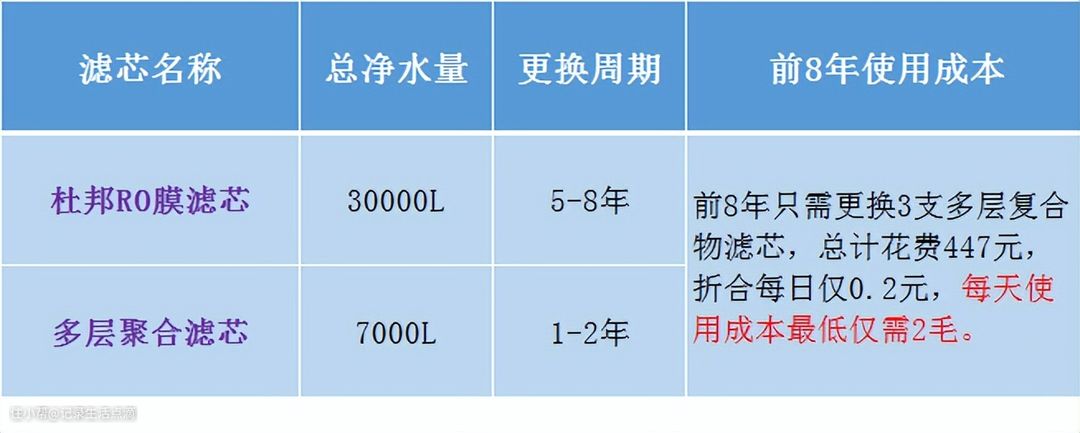 净水器的使用成本一直是大家最为关心的一个问题,那么来算算追觅U20的使用成本。追觅U20的RO滤芯的使用寿命长达8年,其实一款净水器用上8年也差不多了,所以前8年只需更换3支多层聚合滤芯,这款滤芯价格为149元,这样算下来前8年每天的使用成本最低只要2毛,完全到了忽略不计的地步,所以追觅U20后期使用不仅省心,而且更省“薪”!