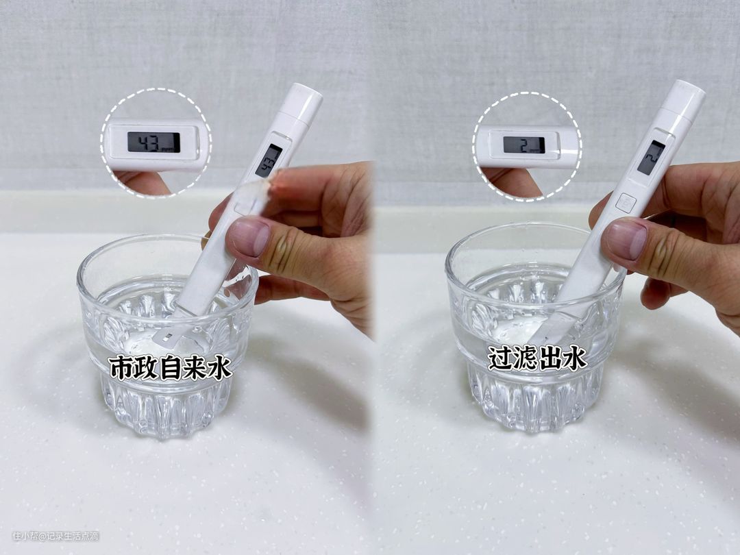 RO膜0.0001微米的孔径足以过滤掉水中的各种杂质,来实测下追觅U20的过滤效果。我家所在地区市政自来水的TDS值实测为43ppm,过滤后出水实测TDS值仅为2ppm,过滤效果十分出色,我家之前那台旧净水器过滤出水TDS值基本都在8~10ppm,追觅U20所选用的美国杜邦RO膜确实要更强大。