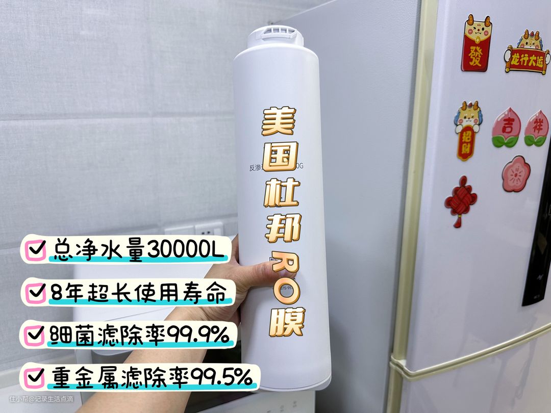 追觅U20之所以有如此出色的表现,其所选用的美国杜邦RO膜功不可没。这款RO膜的总净水量高达30000L,按三口之家的日常净水使用量计算,使用寿命可达8年之久,之前觉得RO膜使用寿命达到3年已经是不得了了,想不到追觅U20的竟然达到了8年,绝对是净水器中的天花板了。这款美国杜邦RO膜有着出色的过滤效果,对水中细菌的滤除率可达99.9%,对重金属的滤除率也达到了99.5%。