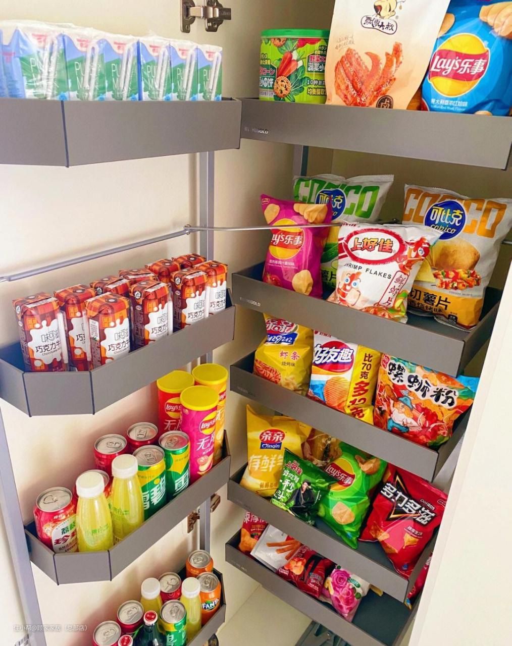 在电视柜中加入一个家政柜和零食拉篮,能够更好地满足生活的需求。家政柜可以放置清洁用品、家电遥控器等常用物品,而零食拉篮则可以存放美食宝藏。这样,既可以方便地打理家务,又可以享受美味的零食。