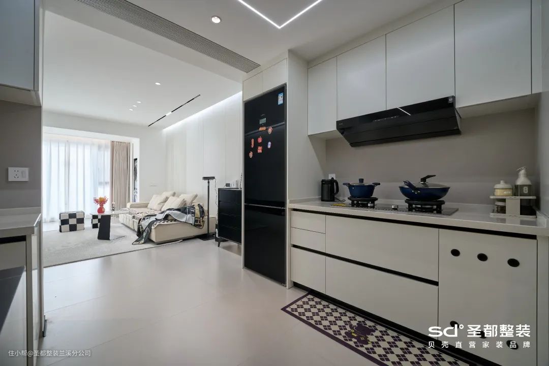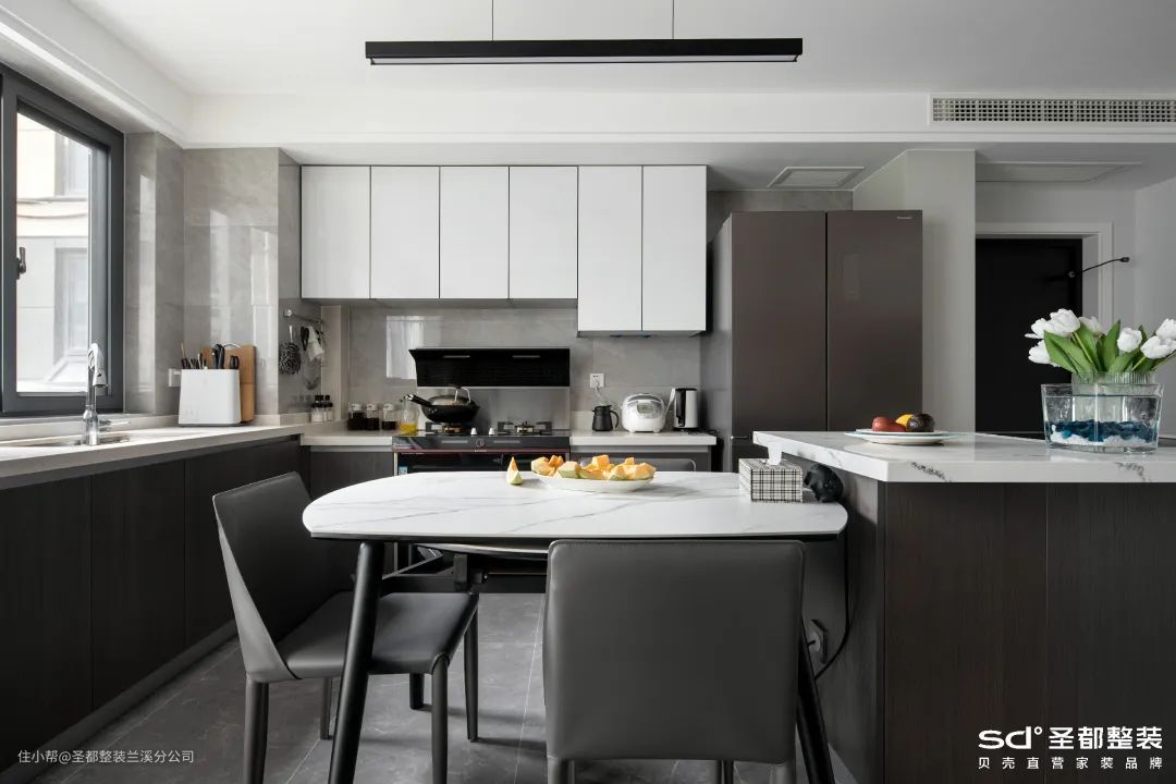 如果厨房空间确实不足,可以将冰箱这样的大家电外移至餐厅,缓解厨房收纳压力的同时,进一步提高厨房的舒阔感。
