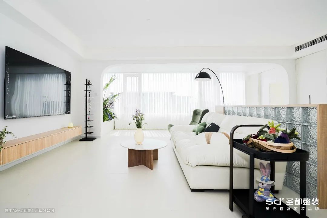 清新的绿植亮眼活力,摆放在地面上,既带来了勃勃生机与盎然春意,还能起到划分空间的作用,在不经意间就区分了各个功能区。