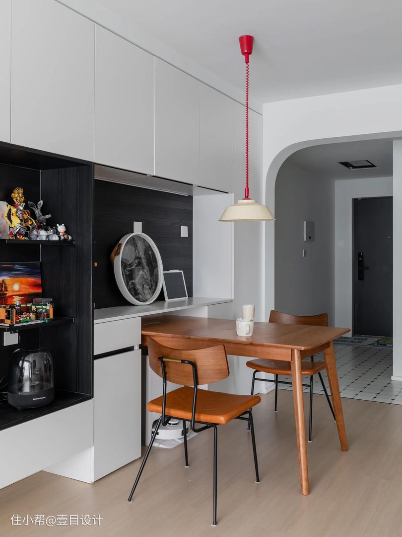 嵌入式餐桌非常适合小户型,通过将餐桌嵌入餐边柜、吧台,在有限的空间内既能满足储物,又能供多人使用,从而节省空间。