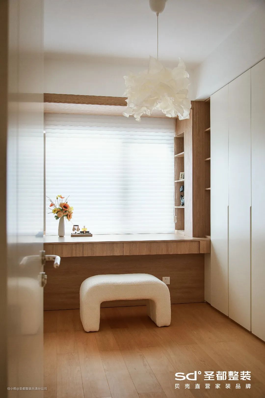 与成品的梳妆台相比,悬挑梳妆台设计新颖且不占地面面积,空间利用率更高。悬挑梳妆台的高度可根据女主人的身高进行规划,通常离地75CM左右。