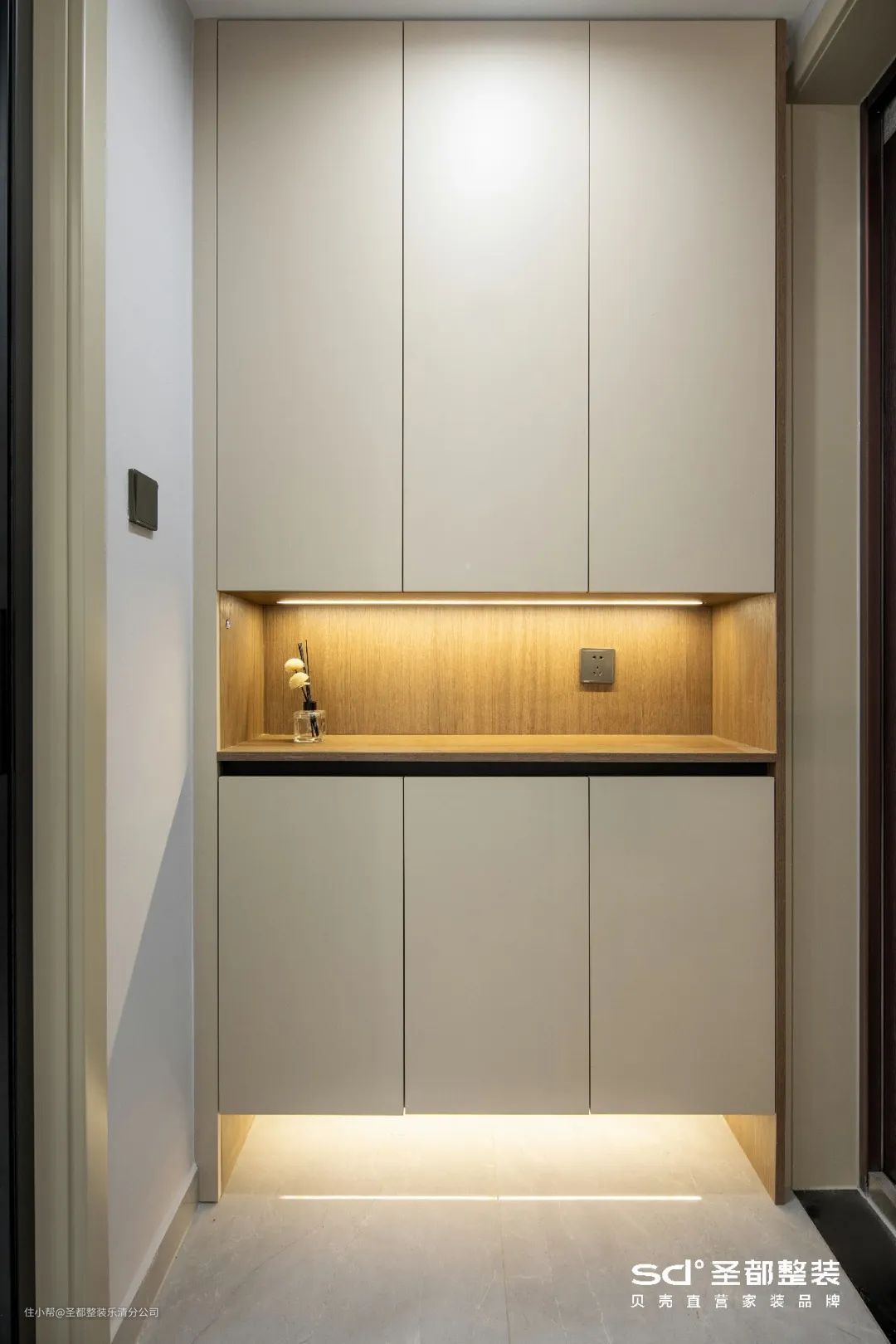 玄关柜一般在底部悬空15CM-20CM左右,方便穿、拖鞋,提高生活效率。