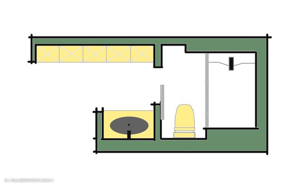 如果卫生间只有一两平米,可以考虑用蹲便,不占地方,相当于一个大型“地漏”,不用担心洗澡积水的问题。