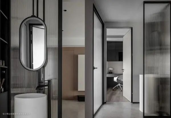 如果家里入户就是卫生间或厨房,就非常适合将洗手台移动到玄关的干湿二分离设计,在这个位置就可以完成洗漱消毒等动作。