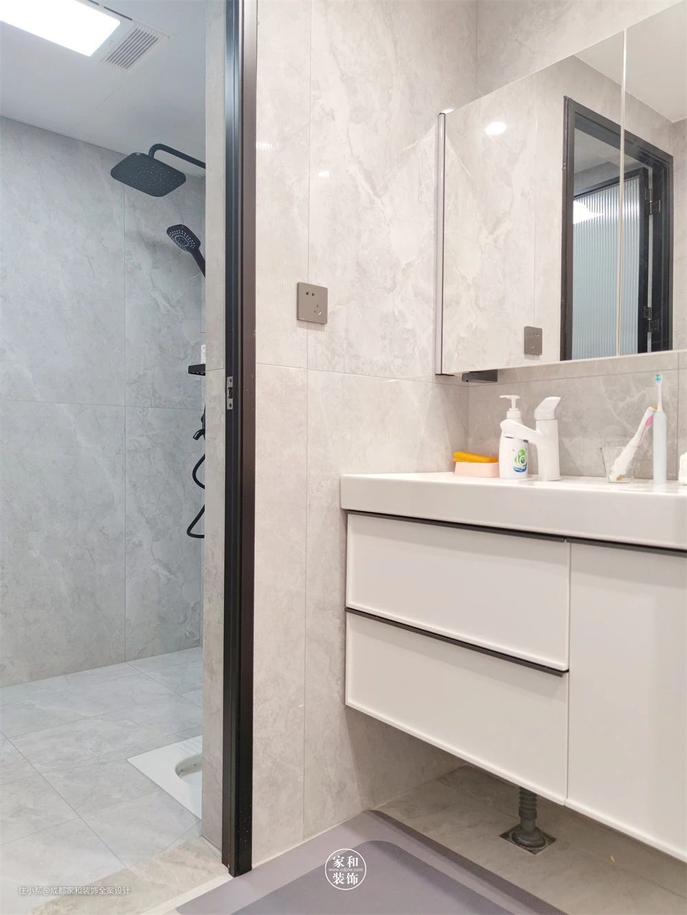 这对于家里只有一个卫生间或暗卫的人而言是很好的选择,一方面可以通过调整洗手台的位置对卫生间进行重新规划,另一方面,日常洗漱场景下,不用看见马桶,减少交叉,是更为卫生的选择。
