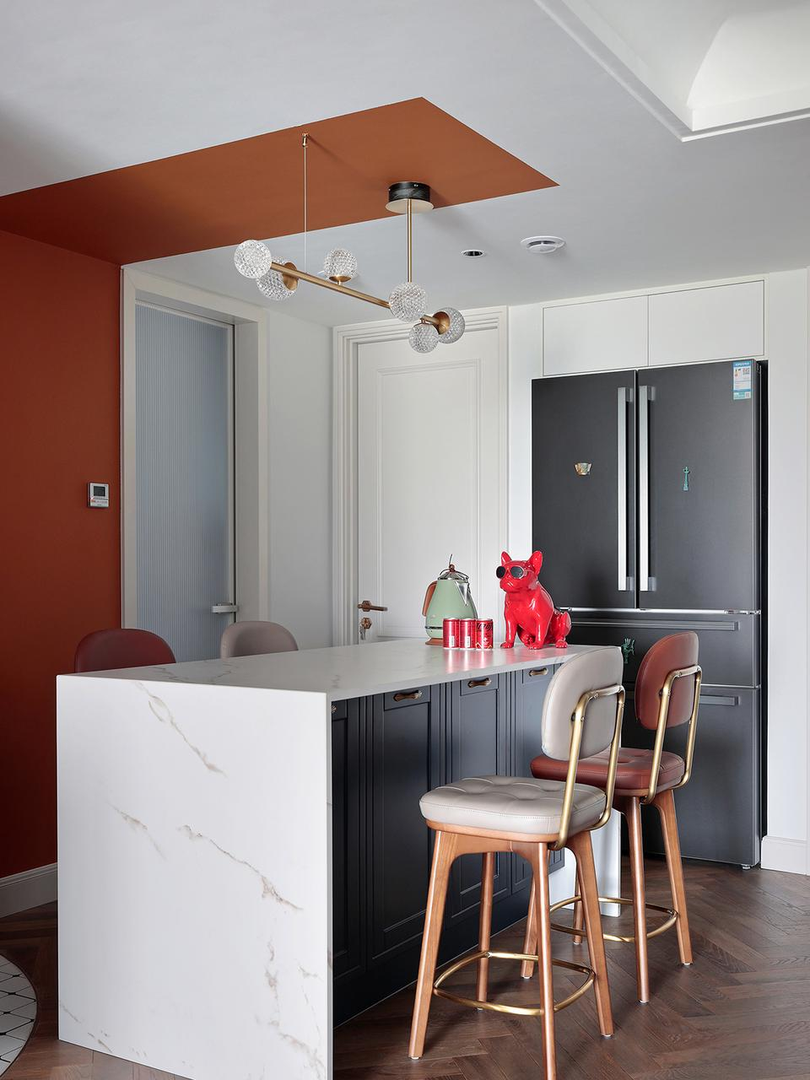 中小户型做独立式餐岛,常与开放式厨房结合,打造洄游动线,清洗→备菜→烹饪→用餐,动线完美闭环,省时省力。