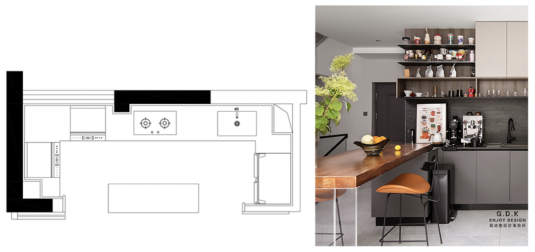 延伸式餐岛:L型