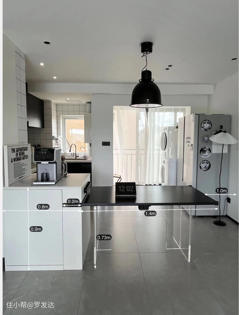 尺寸:台面宽度≥600mm,一岛两用,既是备菜区也是餐桌。
