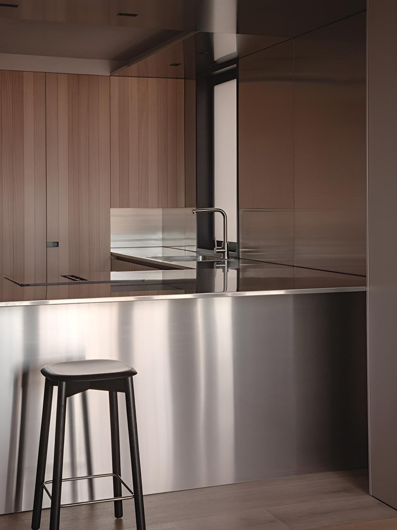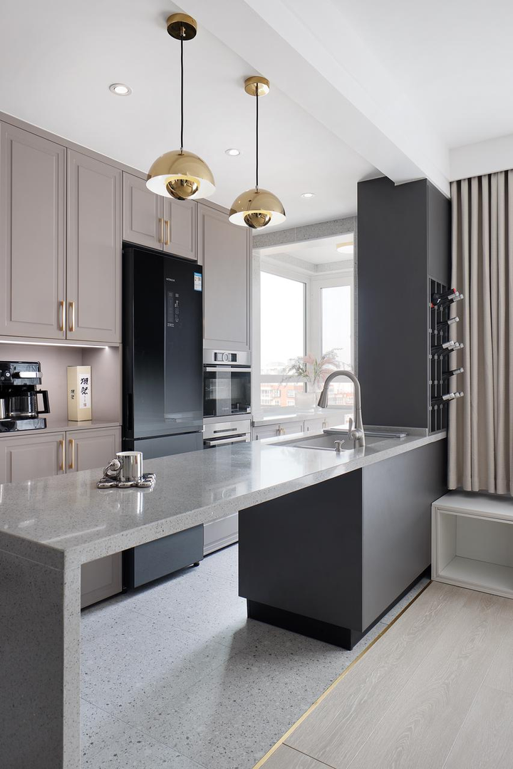 如果想做到小众不撞款,还可以选择洞石、玉石等其他天然石材,其特殊的颜色和纹理,成为餐厨区的点睛设计